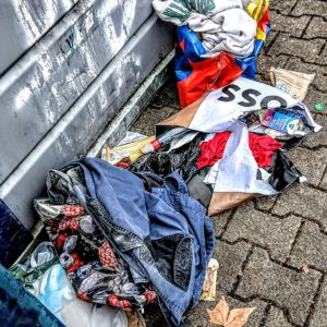 Auf Bühnenbild kann diesmal verzichtet werden: die Textilmüllberge vor den Abfallcontainern werden optisch in Szene gesetzt und wie von Zauberhand verwandelt, musikalisch serviert mit einem herzergreifenden Retroprogramm, denn: früher war alles besser! Und was wird nun aus den Klamotten? Ganz einfach: alles wird Kunst!